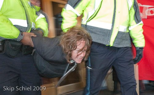 "En este día decimotercero de la masacre de Israel al pueblo de Gaza, yo tomo el nombre de Ahmad Radwan, uno de más de 700 seres humanos en Gaza cuyas vidas han sido tomadas brutalmente por armas hechas en este país y pagadas con dólares de nuestros impuestos” dijo Susan Barney, en una declaración a la prensa después de que fue tomada en custodia por la policía.